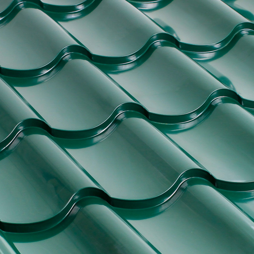 მეტალოკრამიტი ფერადი თუნუქის სახურავი 0.45X1180 პრიალა RAL6005