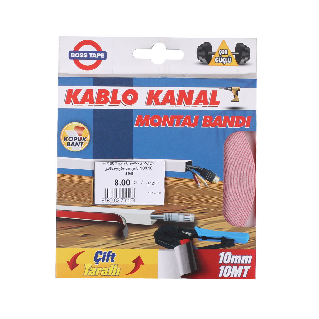 ორმხრივი წებოვანი ლენტი კაბელ კანალებისთვის 10მმX10მ