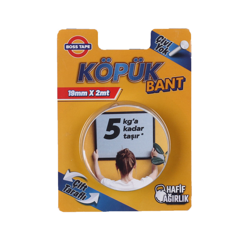 ორმხრივი წებოვანი ლენტი ქაფოვან ფუძეზე 19მმX2მ (5კგ გამძლეობა)
