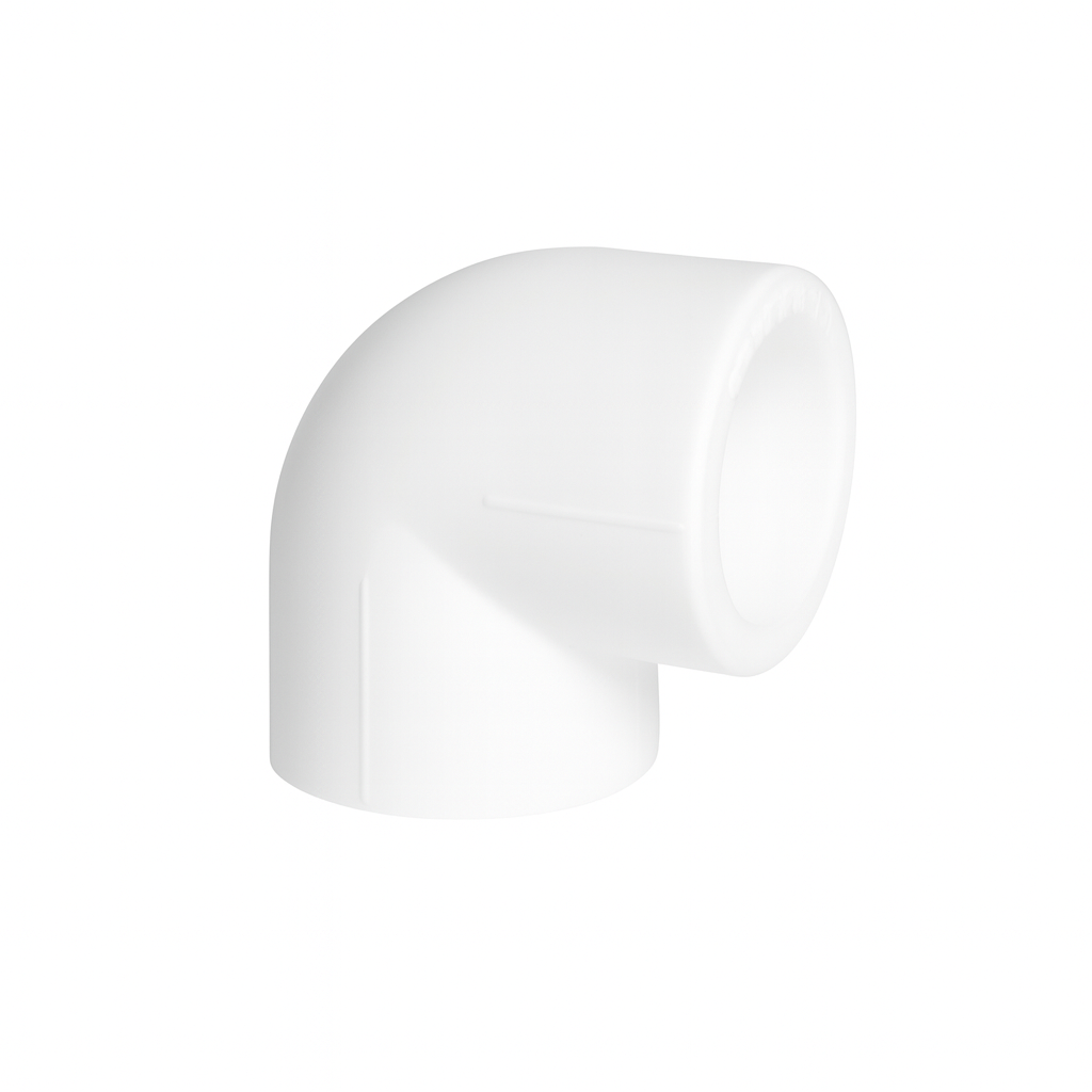 პლასტმასის მილის ფიტინგი (მუხლი) Ø 25X90 (თეთრი)