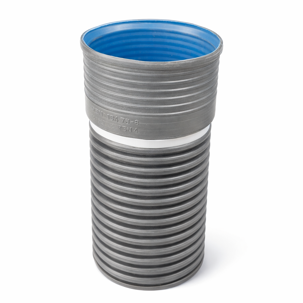 150 მმ. გოფრირებული მილი SN8 გადასაბმელით 6MT(Kuzenler634)
