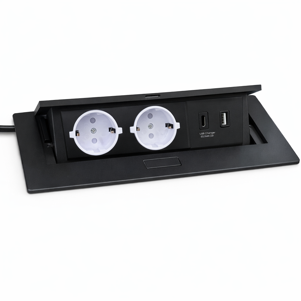 - ტიპი: ჩასაშენებელი / pop-up მაგიდის როზეტი