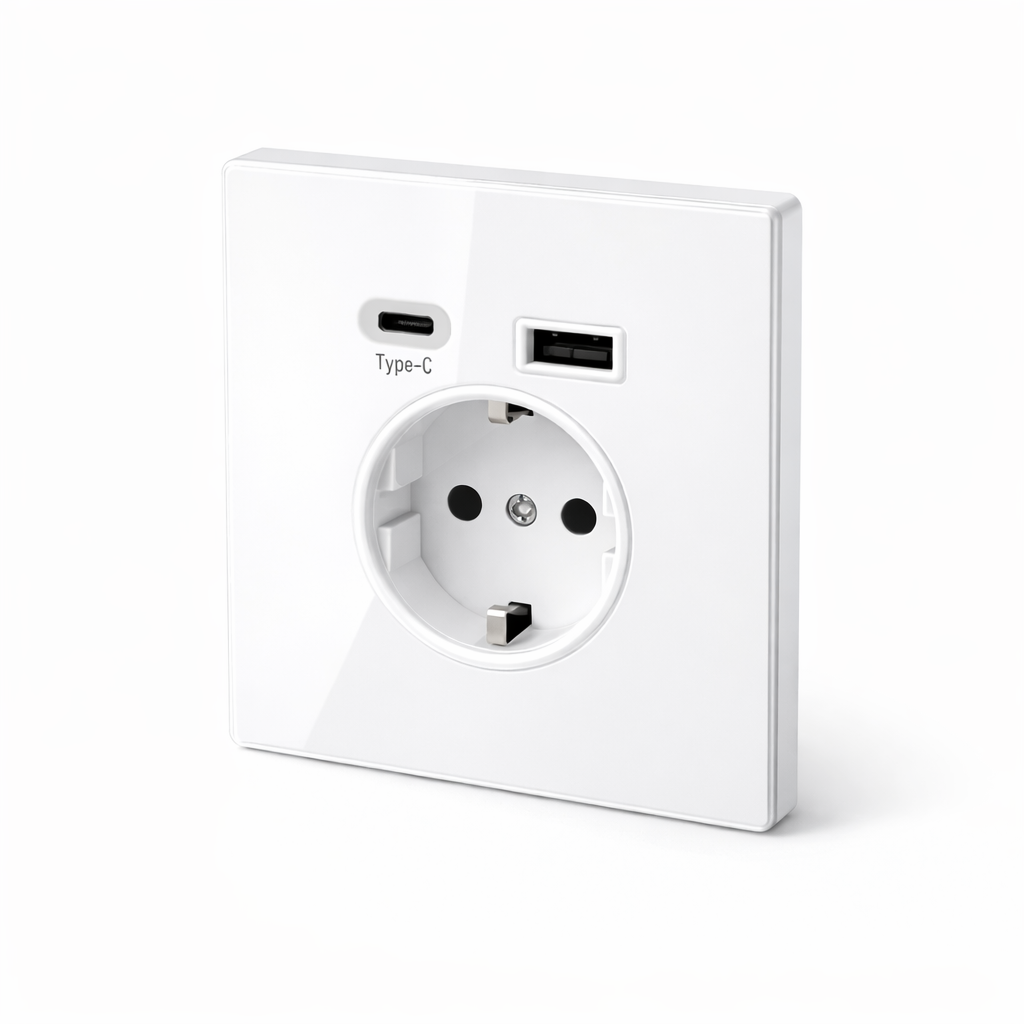 ელექტრო როზეტი USB + Type-C დამტენით, თეთრი – WH A1-11