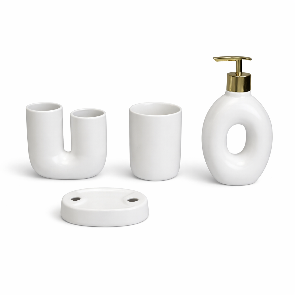 სააბაზანო ნაკრები JHTC-2505-01 აერთიანებს სააბაზანოსთვის საჭირო ნივთებს თანამედროვე დიზაინითა და ფუნქციურობით. კომპლექტი შექმნილია იმისთვის, რომ თქვენი აბაზანა იყოს უფრო ორგანიზებული, გემოვნებიანი და მოხერხებული ყოველდღიური გამოყენებისთვის.