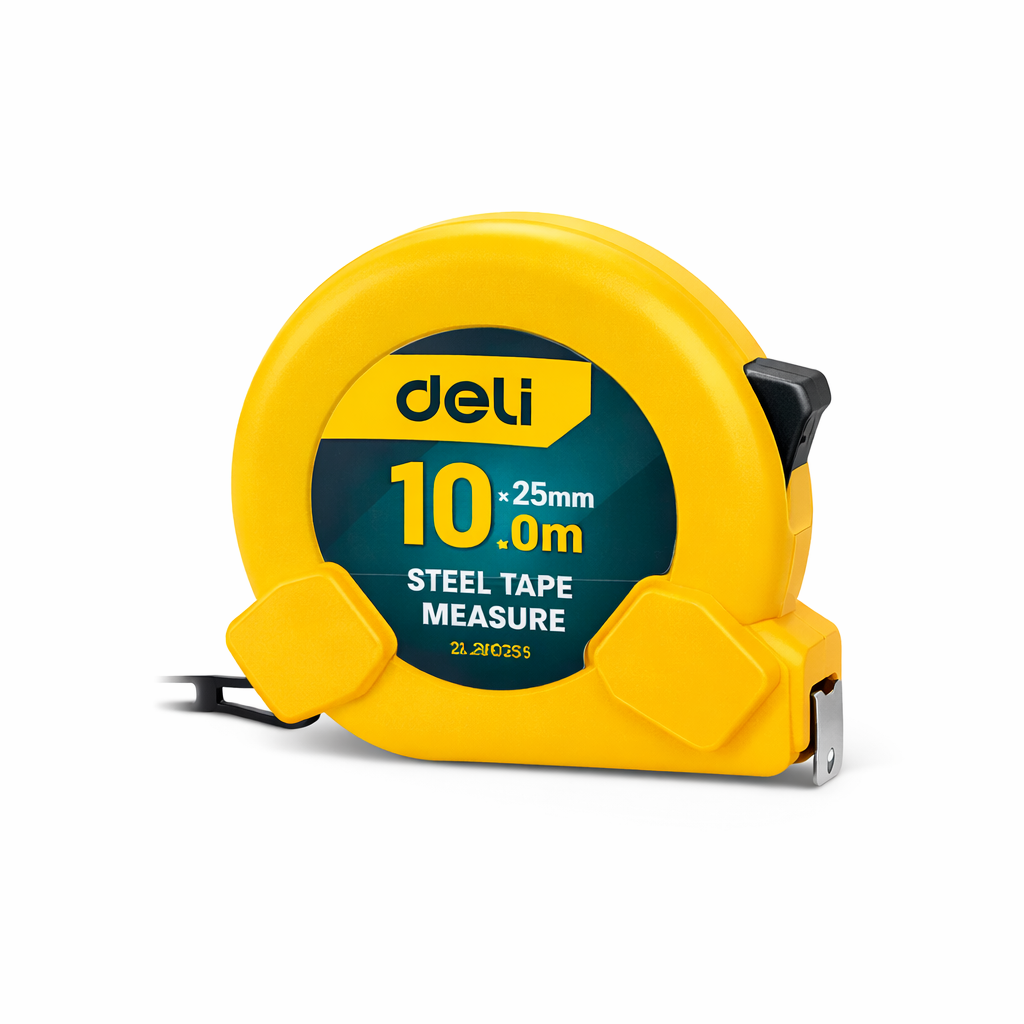Deli DL281025Y 10მ საზომი რულეტი განკუთვნილია ზუსტი და მარტივი საზომი სამუშაოებისთვის. მისი მყარი მასალებით დამზადებული კომპაქტური დიზაინი და კომფორტული გამოყენება ხელს უწყობს სიზუსტეს სხვადასხვა გარემოში.