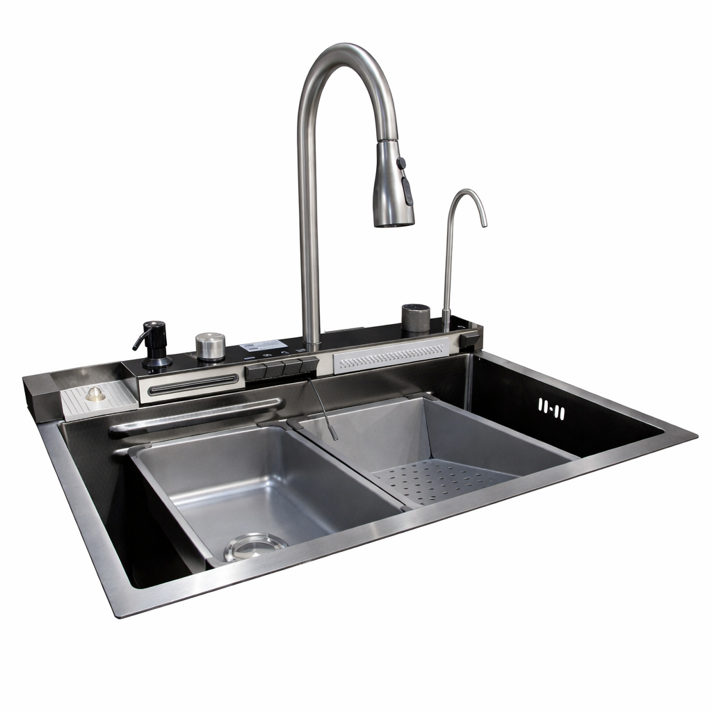 უჟანგავი ლით. ნიჟარა NYWY-24-24 (BLACK) ზომა: 75*46 ( შემრევით, ტერმოსტატით, აქსესუარებით)