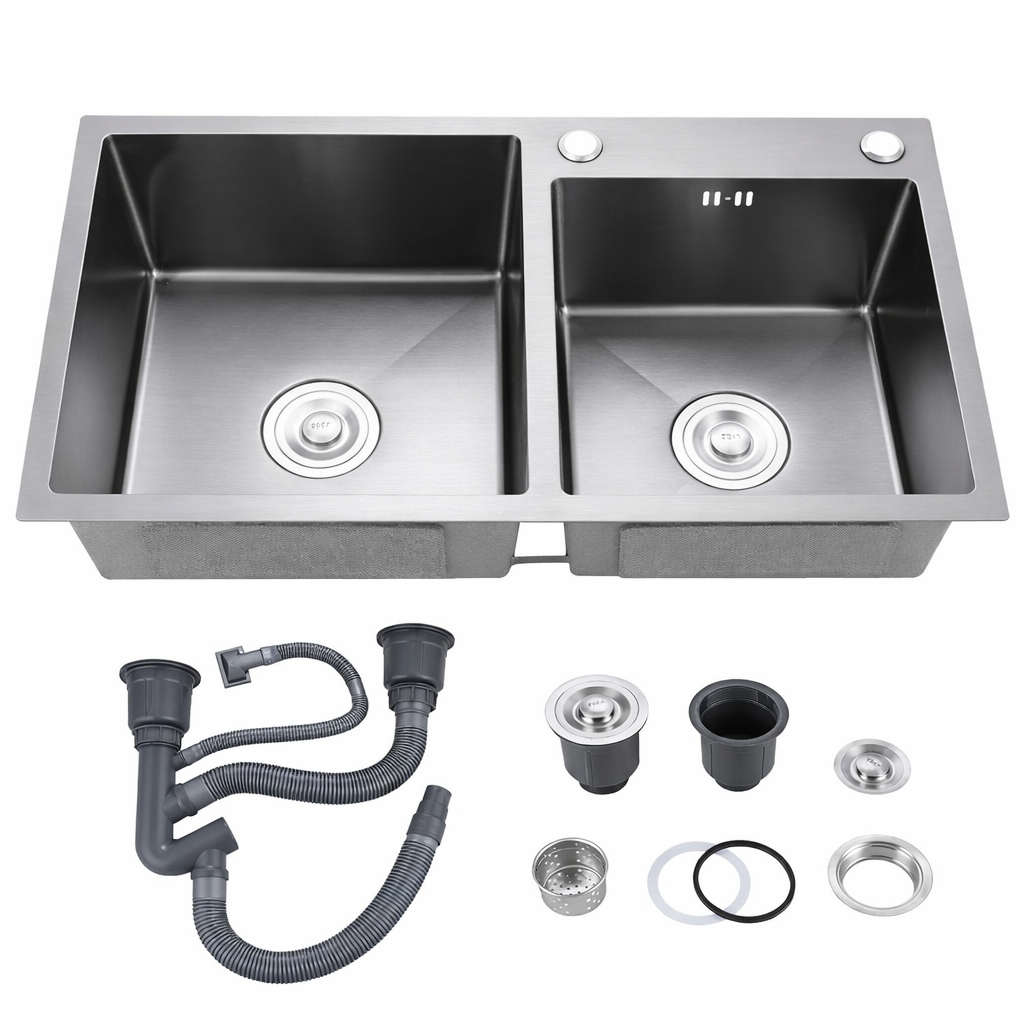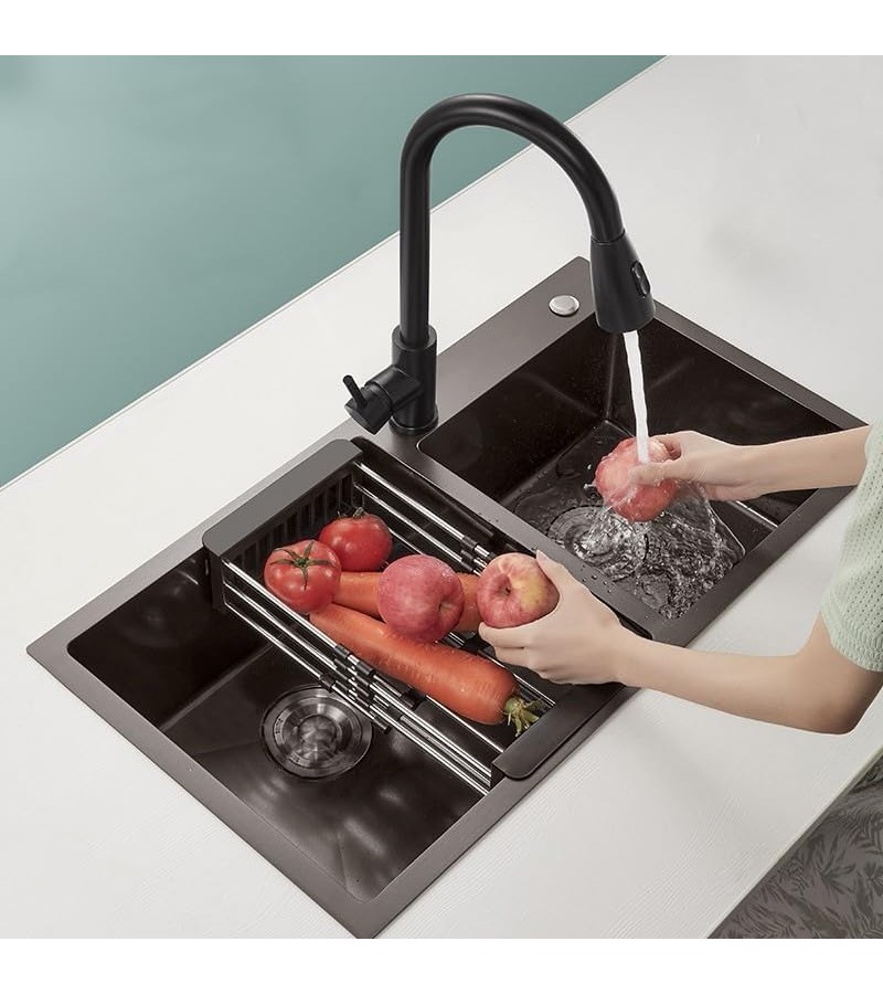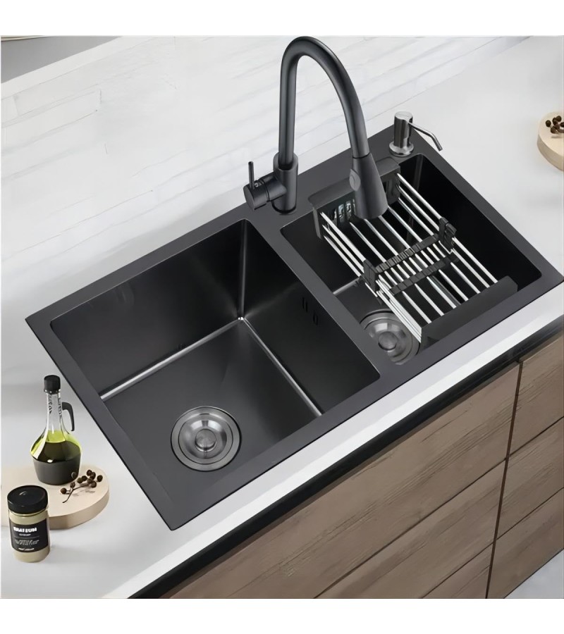 უჟანგავი ლით. ნიჟარა ზომა: 78*43 2-ნი ჩასას. სიფონ. საწურით (BLACK) NYWY-24-5