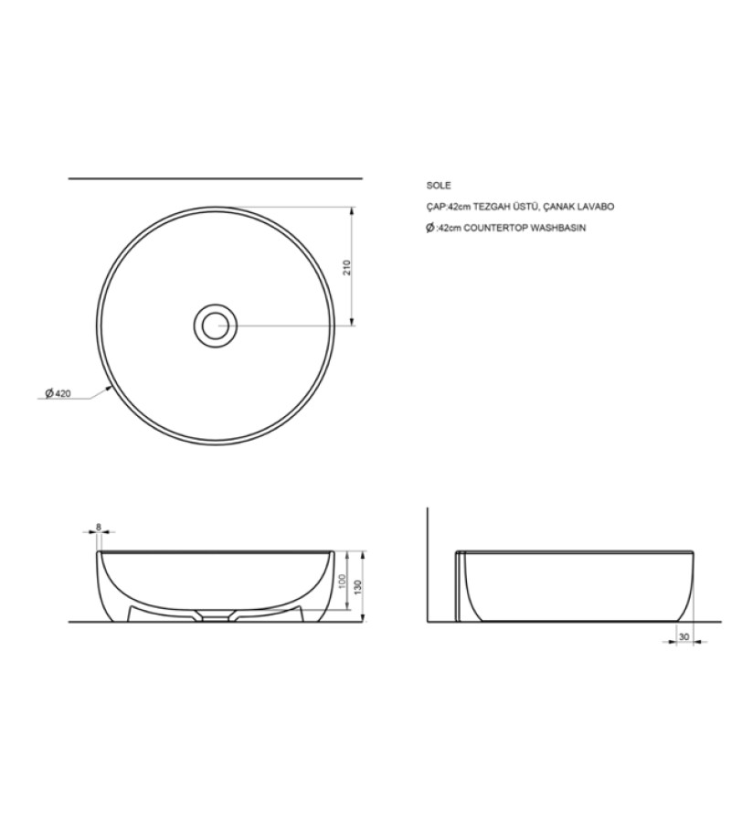 ხელსაბანი მრგვალი SOLE 42 სმ SERAMIKSAN
