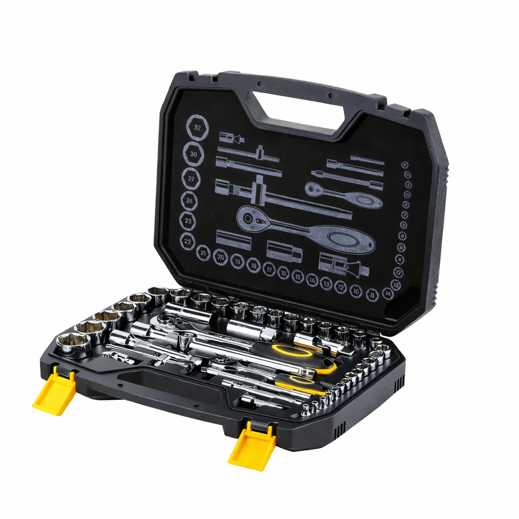 მთავარიხელსაწყოებიინსტრუმენტების ნაკრებიხელსაწყოების თავაკების ნაკრები 44ც 1/2+1/4 DL1044 მწარ. deli